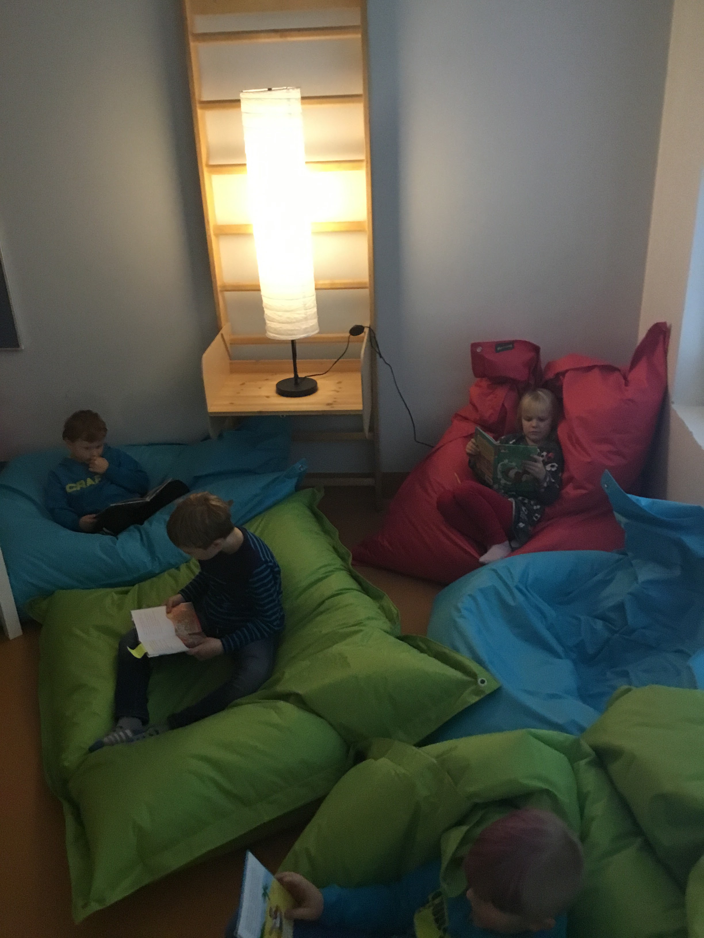 Pääsimme lukemaan omia kirjoja ensimmäistä kertaa koulumme uuteen ihanaan toimintaluokkaan.